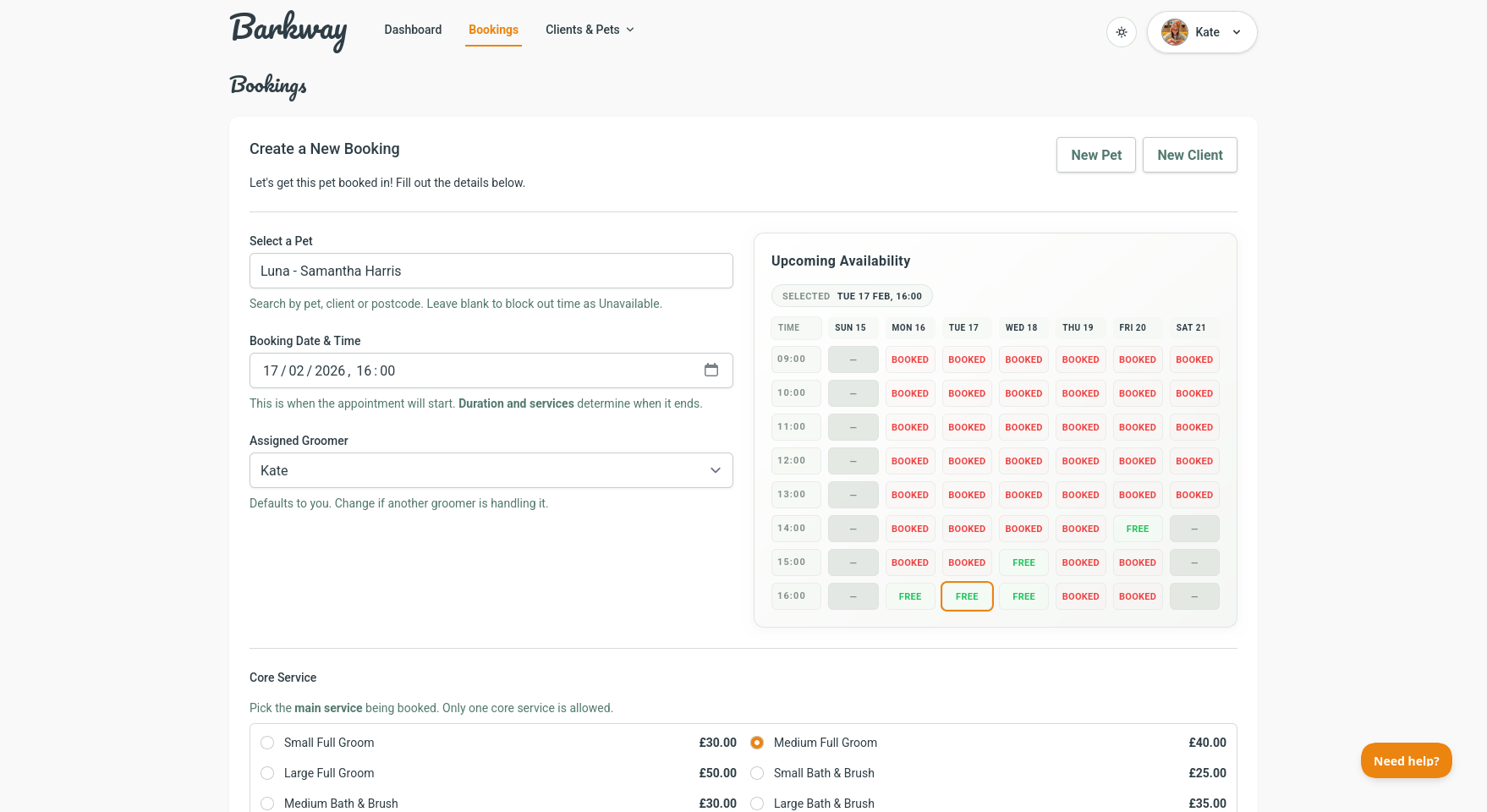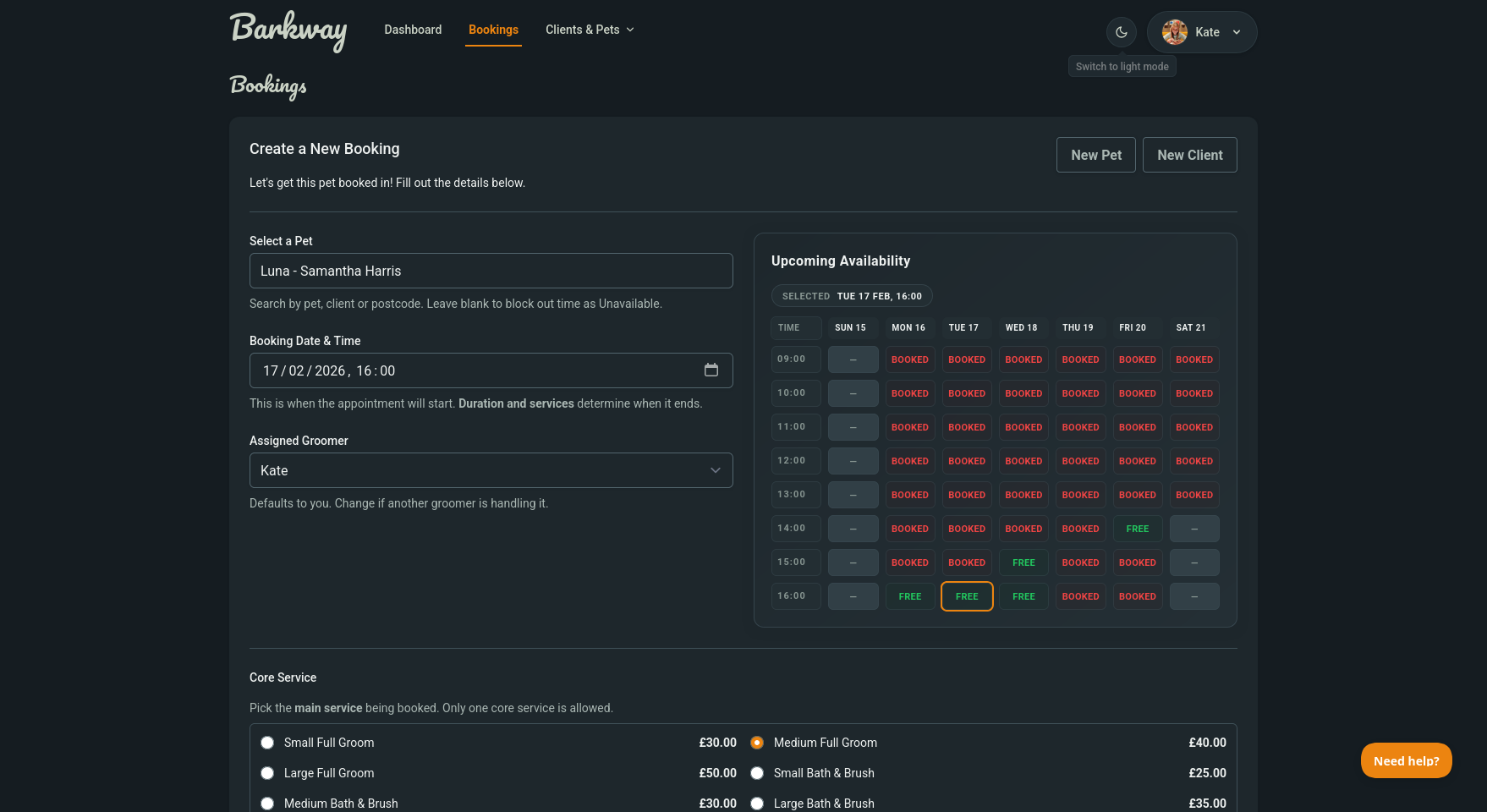 With your first booking saved, you’re officially up and running in Barkway. Either have a play around and figure things out (we promise it's easy) or dive into the Features and become a Barkway expert in no time.